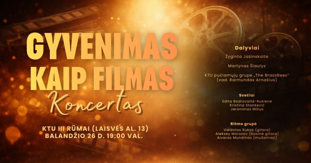 Koncertas „Gyvenimas kaip filmas“ kviečia pasinerti į muzikos pasaulį, kuriame skambės džiazo standartai ir visiems puikiai atpažįstami kūriniai iš miuziklų lietuvių kalba.