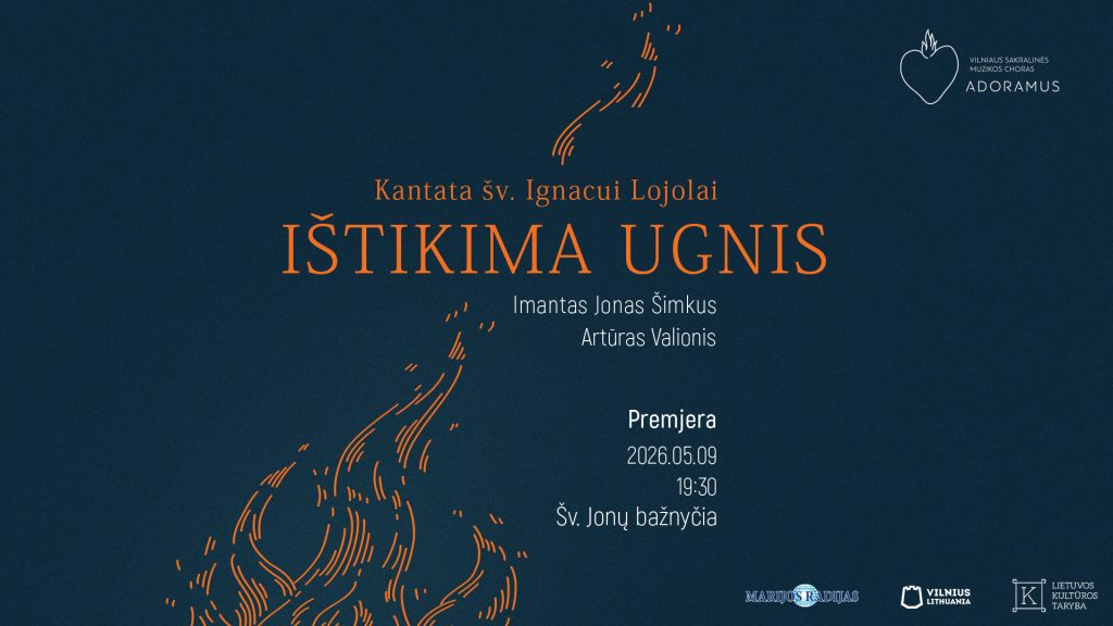 2026 metais minimos šv. Ignaco Lojolos 470-osios gimimo Dangui metinės. Kviečiame į išskirtinį sakralinės muzikos koncertą – naujos Imanto Jono Šimkaus (tekstas Artūro Valionio) kantatos premjerą gegužės 9 dieną.