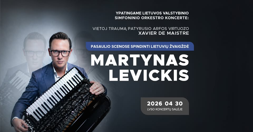 Lietuvos valstybinio simfoninio orkestro koncerte balandžio 30 d. pasirodyti turėjęs garsusis arfos virtuozas XAVIER DE MAISTRE ką tik patyrė stiprią nugaros traumą ir jam skubiai reikalinga medicininė intervencija. Todėl, nepaisant didžiulio solisto noro susitikti su Lietuvos publika, deja, jis niekaip negalės atvykti į Vilnių šiam koncertui, dėl ko solistas pergyvena ir nuoširdžiai apgailestauja. Tačiau yra ir geroji žinia – pakeisti traumą patyrusį solistą sutiko vienas ryškiausių šiandienos atlikėjų, pasaulio scenas užkariavusi lietuvių žvaigždė MARTYNAS LEVICKIS.