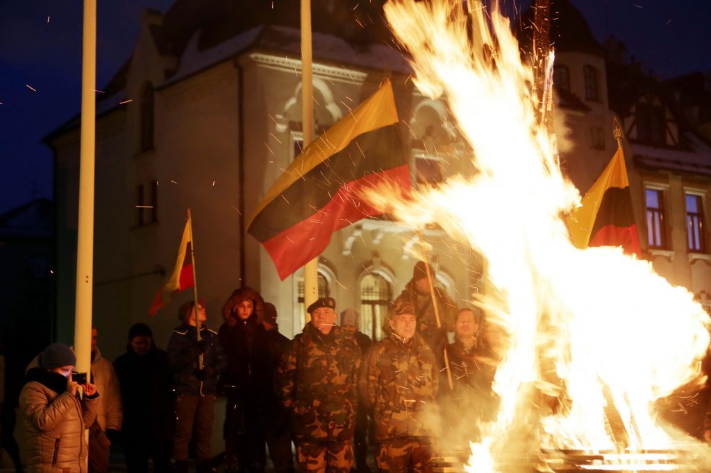 18 val. Atminimo laužų uždegimo ceremonija prie Lietuvos nacionalinio radijo ir televizijos
