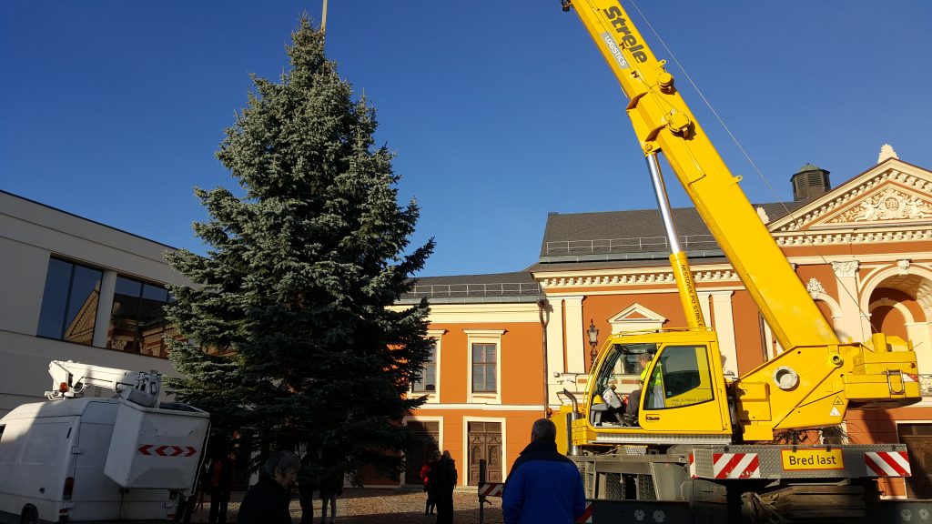 Klaipėdos senamiesčio širdyje – Teatro aikštėje – tikros Kalėdų nuotaikos. Penktadienio vidurdienį, orui daugiau primenant pavasarį nei žiemą, centrinė miesto eglutė atkeliavo į aikštę.